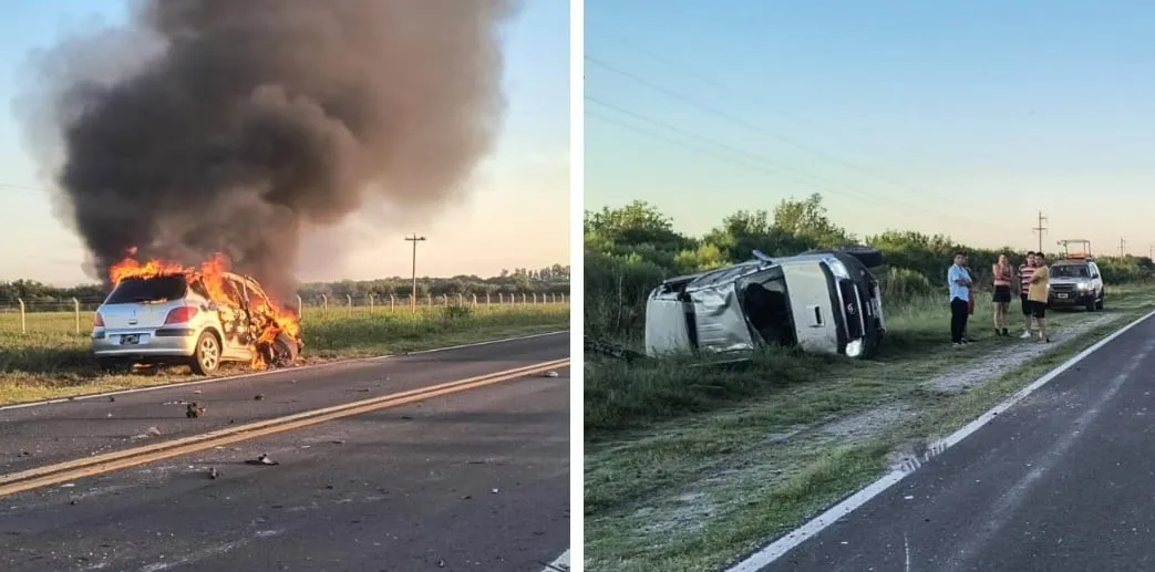 Choque y vuelco en la Ruta 12 terminó con un vehículo completamente incendiado